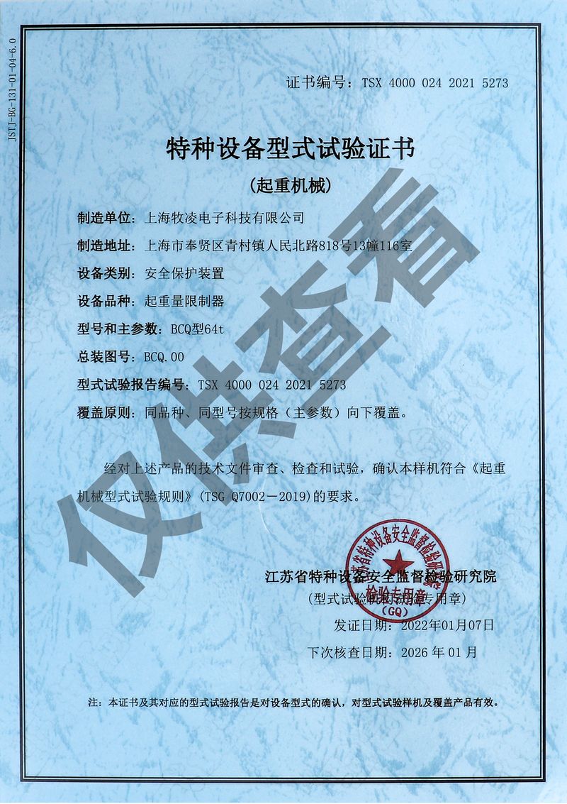 上海牧凌以“ 誠信經營,客戶至上”的經營方針,不斷加強企業(yè)管理,提升產品質量和服務水準。公司擁有十多年的生產制造經驗,已實現生產流程標準化。以用心服務、創(chuàng)新致遠的經營理念,專業(yè)的技術指導,完備的倉儲鏈,完善的售后服務,為國內外客戶提供完備的起重配套和解決方案,其中BCQ/QCX等相關系列產品均已通過國家橋門式起重機械產品質量監(jiān)督檢驗中心檢測,并頒發(fā)《特種設備型式試驗合格證》。得到了廣大用戶和同業(yè)人士的高度贊譽與信賴,建立了長期合作關系。